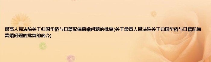 最高人民法院关于归国华侨与日籍配偶离婚问题的批复(关于最高人民法院关于归国华侨与日籍配偶离婚问题的批复的简介)