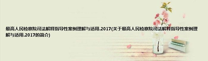 1、 最高人民检察院司法解释指导性案例理解与适用.2017是一本2018年出版的图书。