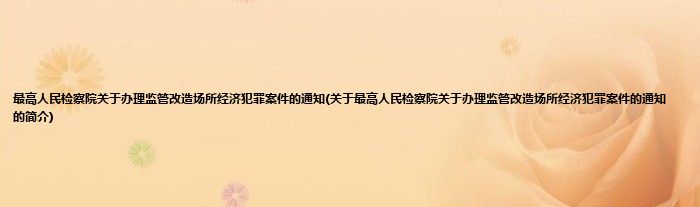 最高人民检察院关于办理监管改造场所经济犯罪案件的通知(关于最高人民检察院关于办理监管改造场所经济犯罪案件的通知的简介)
