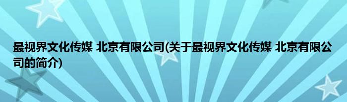 本文关于最视界文化传媒 北京有限公司的简介就讲解完毕,希望对大家有所帮助。