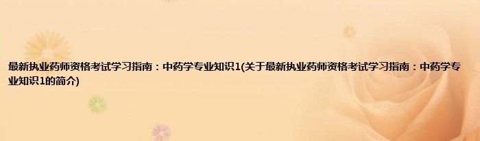 本文关于最新执业药师资格考试学习指南:中药学专业知识1的简介就讲解完毕,希望对大家有所帮助。