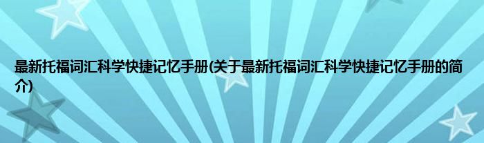大家好,最新托福词汇科学快捷记忆手册,关于最新托福词汇科学快捷记忆手册的简介很多人还不知道,现在让我们一起来看看吧!
