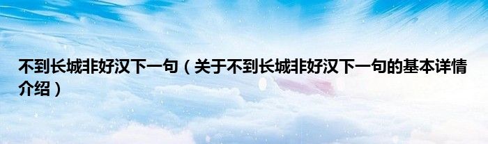本文关于不到长城非好汉下一句的基本详情介绍就讲解完毕,希望对大家有所帮助。