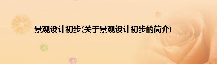 本文关于景观设计初步的简介就讲解完毕,希望对大家有所帮助。