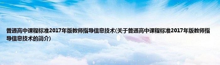 普通高中课程标准2017年版教师指导信息技术(关于普通高中课程标准2017年版教师指导信息技术的简介)