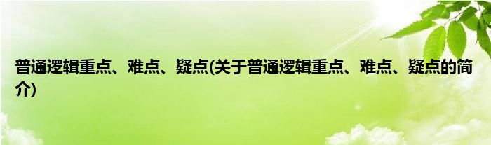 本文关于普通逻辑重点、难点、疑点的简介就讲解完毕,希望对大家有所帮助。