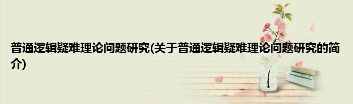 本文关于普通逻辑疑难理论问题研究的简介就讲解完毕,希望对大家有所帮助。