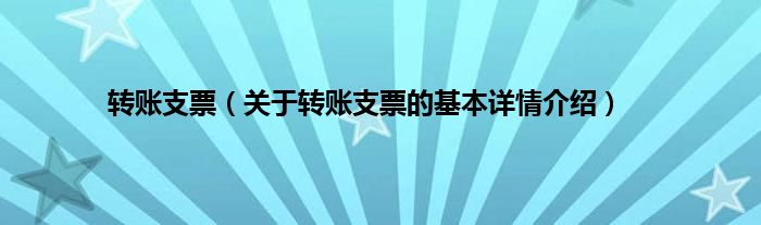本文关于转账支票的基本详情介绍就讲解完毕,希望对大家有所帮助。