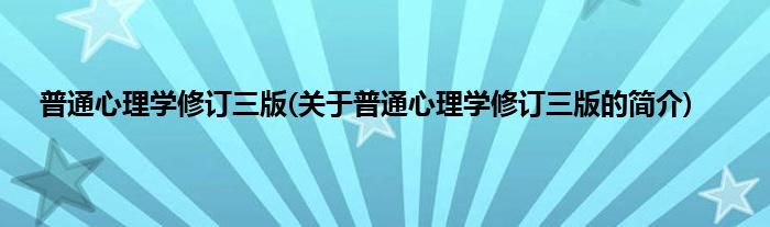大家好,普通心理学修订三版,关于普通心理学修订三版的简介很多人还不知道,现在让我们一起来看看吧!