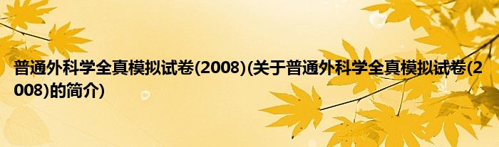 本文关于普通外科学全真模拟试卷(2008)的简介就讲解完毕,希望对大家有所帮助。