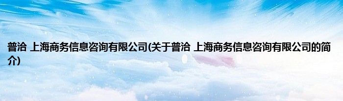 本文关于普洽 上海商务信息咨询有限公司的简介就讲解完毕,希望对大家有所帮助。