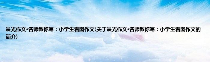 本文关于晨光作文·名师教你写:小学生看图作文的简介就讲解完毕,希望对大家有所帮助。
