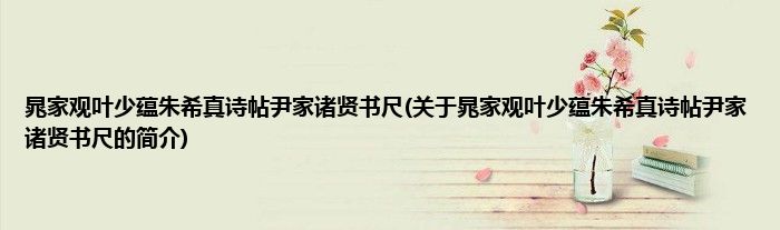 本文关于晁家观叶少蕴朱希真诗帖尹家诸贤书尺的简介就讲解完毕,希望对大家有所帮助。