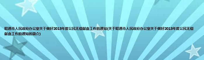 本文关于昭通市人民政府办公室关于做好2013年度公民无偿献血工作的通知的简介就讲解完毕,希望对大家有所帮助。