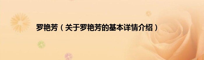 本文关于罗艳芳的基本详情介绍就讲解完毕,希望对大家有所帮助。