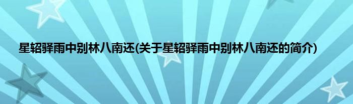 本文关于星轺驿雨中别林八南还的简介就讲解完毕,希望对大家有所帮助。