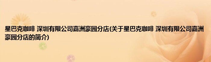 星巴克咖啡深圳有限公司嘉洲豪园分店(关于星巴克咖啡深圳有限公司嘉洲豪园分店的简介...