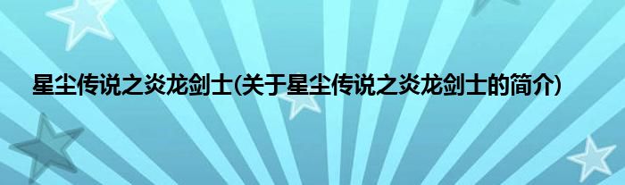 本文关于星尘传说之炎龙剑士的简介就讲解完毕,希望对大家有所帮助。
