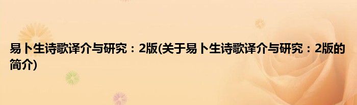 大家好,易卜生诗歌译介与研究:2版,关于易卜生诗歌译介与研究:2版的简介很多人还不知道,现在让我们一起来看看吧!