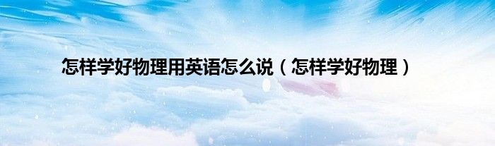 大家好,精选小编来为大家解答以上问题。怎样学好物理用英语怎么说,怎样学好物理很多人还不知道,现在让我们一起来看看吧!