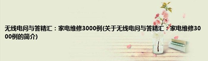 本文关于无线电问与答精汇:家电维修3000例的简介就讲解完毕,希望对大家有所帮助。