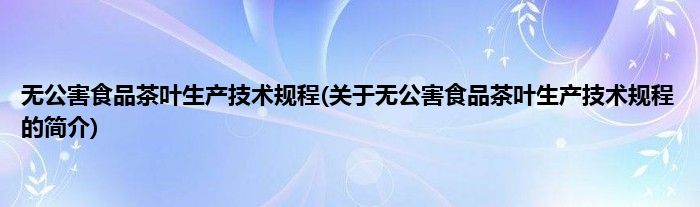 大家好,无公害食品茶叶生产技术规程,关于无公害食品茶叶生产技术规程的简介很多人还不知道,现在让我们一起来看看吧!