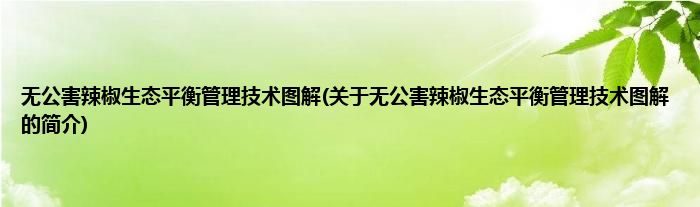 本文关于无公害辣椒生态平衡管理技术图解的简介就讲解完毕,希望对大家有所帮助。