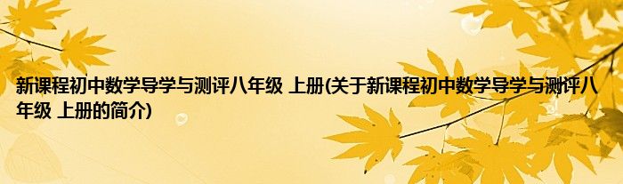 本文关于新课程初中数学导学与测评八年级 上册的简介就讲解完毕,希望对大家有所帮助。