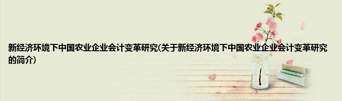 本文关于新经济环境下中国农业企业会计变革研究的简介就讲解完毕,希望对大家有所帮助。