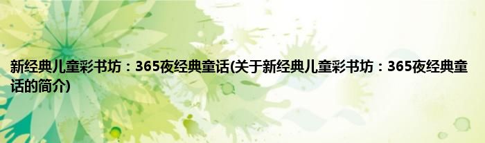 本文关于新经典儿童彩书坊:365夜经典童话的简介就讲解完毕,希望对大家有所帮助。