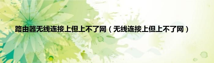 大家好,精选小编来为大家解答以上问题。路由器无线连接上但上不了网,无线连接上但上不了网很多人还不知道,现在让我们一起来看看吧!