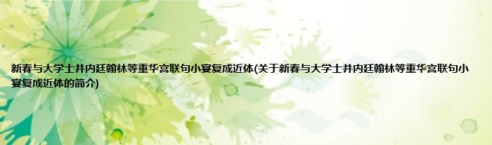 大家好,新春与大学士并内廷翰林等重华宫联句小宴复成近体,关于新春与大学士并内廷翰林等重华宫联句小宴复成近体的简介很多人还不知道,现在让我们一起来看看吧!
