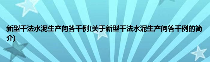 本文关于新型干法水泥生产问答千例的简介就讲解完毕,希望对大家有所帮助。