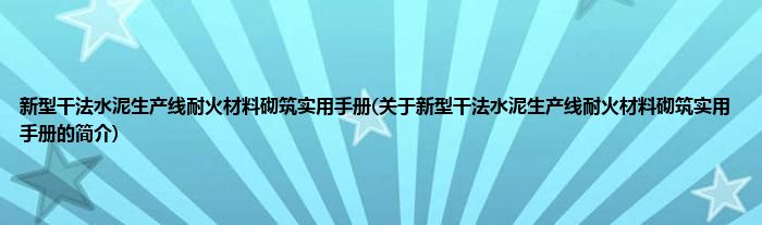 大家好,新型干法水泥生产线耐火材料砌筑实用手册,关于新型干法水泥生产线耐火材料砌筑实用手册的简介很多人还不知道,现在让我们一起来看看吧!