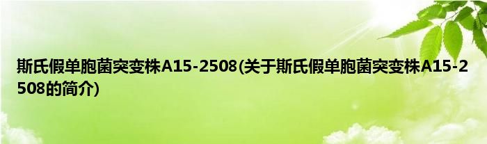 斯氏假单胞菌突变株A15-2508(关于斯氏假单胞菌突变株A15-2508的简介)