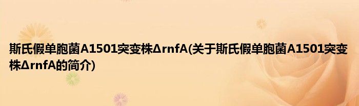 本文关于斯氏假单胞菌A1501突变株ΔrnfA的简介就讲解完毕,希望对大家有所帮助。