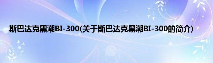 本文关于斯巴达克黑潮BI-300的简介就讲解完毕,希望对大家有所帮助。