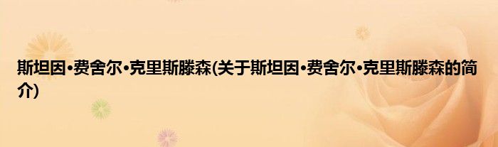 大家好,斯坦因·费舍尔·克里斯滕森,关于斯坦因·费舍尔·克里斯滕森的简介很多人还不知道,现在让我们一起来看看吧!