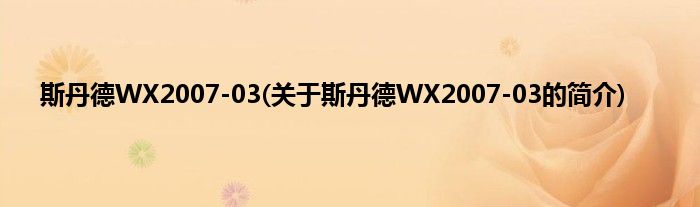 大家好,斯丹德WX2007-03,关于斯丹德WX2007-03的简介很多人还不知道,现在让我们一起来看看吧!