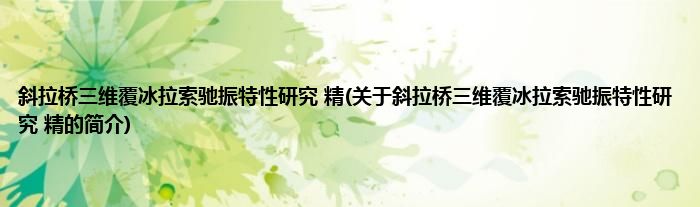 大家好,斜拉桥三维覆冰拉索驰振特性研究 精,关于斜拉桥三维覆冰拉索驰振特性研究 精的简介很多人还不知道,现在让我们一起来看看吧!
