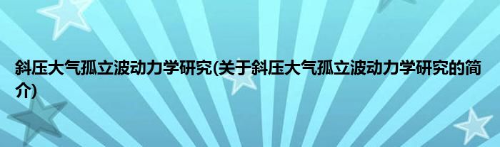 大家好,斜压大气孤立波动力学研究,关于斜压大气孤立波动力学研究的简介很多人还不知道,现在让我们一起来看看吧!