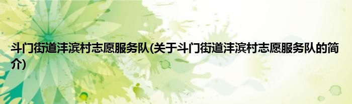 1、 斗门街道沣滨村志愿服务队是由斗门街道志愿服务队领导下的志愿团体。