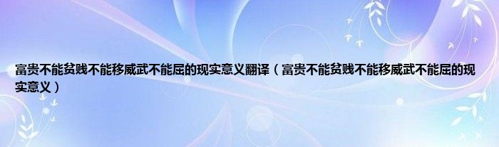 大家好,小常来为大家解答以上问题。富贵不能贫贱不能移威武不能屈的现实意义翻译,富贵不能贫贱不能移威武不能屈的现实意义很多人还不知道,现在让我们一起来看看吧!