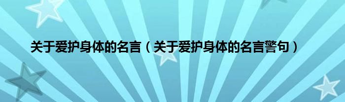 大家好,小常来为大家解答以上问题。关于爱护身体的名言,关于爱护身体的名言警句很多人还不知道,现在让我们一起来看看吧!