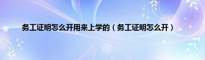 大家好,小常来为大家解答以上问题。务工证明怎么开用来上学的,务工证明怎么开很多人还不知道,现在让我们一起来看看吧!