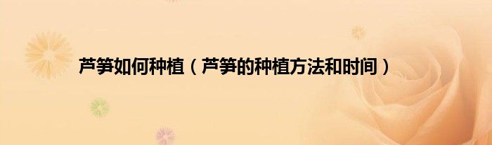 露天芦笋一般4、5月份育苗,7、8月份播种。如果种在大棚里,八九月份也能育苗,十月份就种了。春天是最好的种植时间。如何种植芦笋?种植芦笋时,一定要选择透气性非常好的土壤。另外,你一定要注意土壤是否疏松。芦笋每年发芽2-3次或更多,一般吃春天发芽的嫩茎。