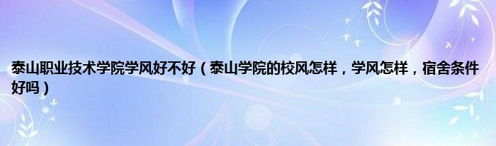大家好,小常来为大家解答以上问题。泰山职业技术学院学风好不好,泰山学院的校风怎样,学风怎样,宿舍条件好吗很多人还不知道,现在让我们一起来看看吧!