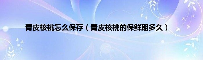 一、 青皮核桃怎么保存