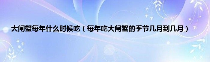 每年吃大闸蟹的季节是9月到11月。九月是吃蟹的好季节,其中十月是吃母蟹的最佳时间,十一月是吃公蟹的最佳时间。从11月底开始,大闸蟹会慢慢变得不好吃。这时候正是雌雄大闸蟹的交配期,肉也没那么嫩了,蟹黄和蟹膏都没了。