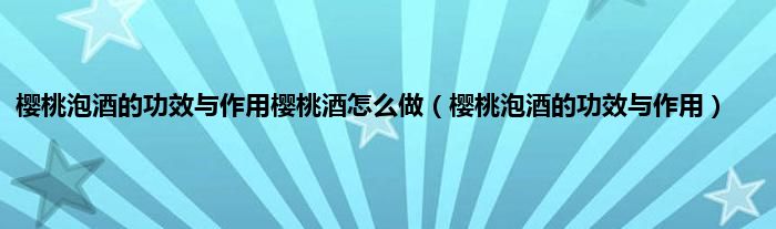 本文,樱桃泡酒的功效与作用樱桃酒怎么做,樱桃泡酒的功效与作用到此就分享完毕,希望对大家有所帮助。